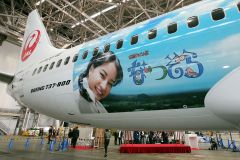 特別塗装機は19日の午後5時45分羽田発帯広行きの便が初フライト。9月中旬まで、国内線で全国各地を飛び回る。(植木康則)