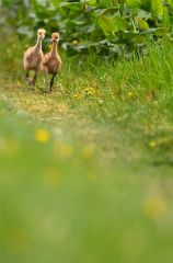 タンチョウは日本で繁殖する唯一の野生ツル。夏季は湿原に分散して営巣する。生まれてから100日程度で飛べるようになる。