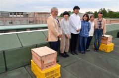 今年度は養蜂事業に必要な道への届け出を済ませた。5月下旬にミツバチ約1万6000匹を購入し、巣箱ごと屋上に設置。サークルに所属する学生は週1回世話し、新たな女王バチの羽化を防ぎ、ハチの健康状態を確認する。ハチは10万匹程度まで増え、蜂蜜は6月末から採取できる見込み。ハチの越冬にも挑戦する。