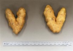 V字型のジャガイモ「ビクトリーポテト」と小森さん