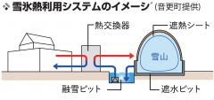 計画では、施設の北側奥に430立方メートルの貯雪が可能な堆雪ヤード(縦10メートル、横17メートル、高さ3メートル)を整備。冬場に降り積もった雪を積み上げて雪山を造成し、遮熱シートで保存する。
