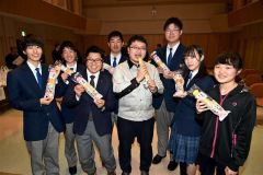 【大樹】パン製造販売の満寿屋商店(帯広、杉山雅則社長)と大樹高校(青木祐治校長、生徒139人)の生徒が共同開発した「大樹ロケットパン」(3種類)が18日午前、初披露された。パッケージデザインは町内の小・中学生から公募。3月中旬から店頭販売するほか、同6~8日に横浜市で開かれる日本最大級のパンイベント「パンのフェス」の初日に先行販売し、全国デビューする。売り上げの一部は、地元でロケット開発を進めるインターステラテクノロジズ(IST、稲川貴大社長)に寄付する。