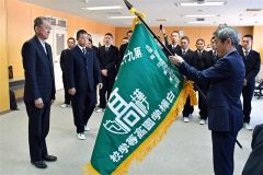 白樺学園と帯農へセンバツ旗授与式、両校ナイン夢の大舞台へ闘志高める