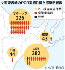 数値上で十勝の検査件数が少ないのは歴然。ただ、これには国や道の検査基準が絡み、「十勝で陽性判定が出た患者が少ないからこそ、検査件数も小規模にとどまる構図がある」(道関係者)という。