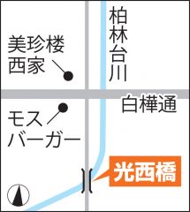 光西橋は柏林台川に架かる長さ約40メートルのアーチ状の橋。柏林台通から中島通まで南北に通る幹線道路にあり、白樺通沿いの商業施設や広陽小学校などが近い。