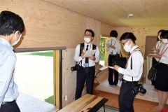 学生たちは、同センター内の展示スペースで希少な動植物や地形、国立公園化の概要を学んだ後、園内を散策した。建築家の隈研吾氏とスノーピーク(新潟)が製作したモバイルハウス「住箱(じゅうばこ)」にも入り、大自然の中で過ごす時間に思いを巡らせた。学生からは「勝毎がアウトドア分野に参入する考えは」といった質問も出ていて、地域の環境、観光資源を見つめ直していた。