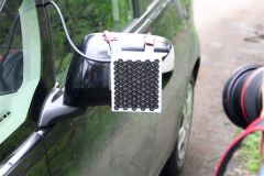 北海道科学大学(札幌)の松崎博季教授(帯広市出身)の研究室は15日、エゾシカと車両の衝突事故防止へ向けた実験を帯広市内で行った。サイドミラーにスピーカーを取り付け、シカが嫌がる音を流しながら走行し、音が届く範囲などを調査した。