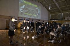 遠藤翔哉生徒会長が「幕高で学んだことを忘れず、最後の卒業生としての誇りを胸に刻み、これからの人生を歩んでいきたい」と感謝の言葉を述べ、在校生20人が開校時からの沿革を写真とともに紹介した。