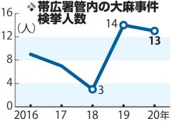 帯広署管内の2020年の大麻検挙数13人 20代以下が半数以上