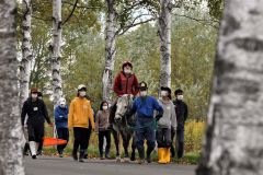 乗馬に笑顔 畜大の馬係留施設CFで完成