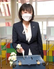 晴れやかな表情で1票を投じ、「大勢の皆さまにお世話になり、今はすがすがしい気持ち」と感想を述べた。出入り口付近では高齢の有権者から声を掛けられ、あいさつを交わした。