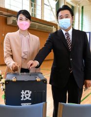 石川さんは午前9時15分ごろ、夫の知裕さん(元衆院議員)とともに投票所の若葉小学校に到着。有権者とあいさつも交わし、テーマカラーのピンク色のブラウスとジャケット、黒色のパンツを身にまとい、2人で一緒に1票を投じた。