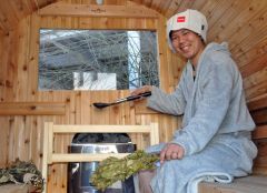 昨年11月、帯広市内にオープンしたフィンランドのサウナブランド「ハルビア」のショールームは、浴室を完備したサウナの有料体験スペースを設け、今年4月上旬にリニューアルオープンする。市内で薪(まき)ストーブを販売する「薪火屋」は、サウナ用のストーブやグッズも取り扱っており、コロナ禍でテントサウナの需要が増加。今年夏にも、サウナの設置工事やアフターフォローまで一貫したサービスを本格化させる。(大海雪乃)