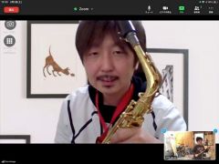 レッスンは5、6の両日に実施。同スクール生12人のうち9人が1人1時間ずつ、ビデオ会議システム「Zoom(ズーム)」を活用して札幌のサックス奏者小野健悟さん(49)とつながり、指導を受けた。