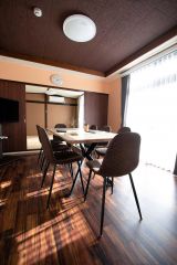 施設は木造平屋で床面積は約90平方メートル。内装は「和モダン」なデザインで、くつろげる空間に仕上げた。古材を加工したテーブルも置かれ、和洋折衷の雰囲気が感じられる。寝室やキッチンの他、Wi-Fi(ワイファイ)なども完備した。