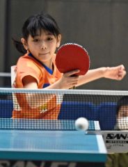 ホープス女子は新5年生の谷沿來羽(札内南)が制した。「スマッシュが入りました」と笑顔で振り返った。クロスのラリーからストレートを効果的に使い、主導権を握って勝利を重ねた。サーブも効果を発揮。横回転、下回転と使い分け、甘い返球を誘い3球目攻撃につなげた。