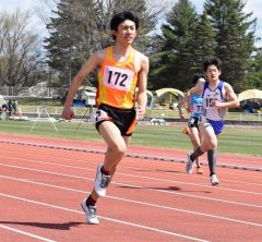 中学男子400メートル3組で村本真葉呂(帯四3年)はジョギングのように軽くスタート。他の選手が一気に加速するのに「思っていた以上に速い」と驚きながら追走し、最終コーナーを回ったところで2位に浮上。ホームストレート終盤で逆転し1位に。2位の高橋大悟(足寄3年)に1秒以上の差をつける57秒19で初レースを制した。