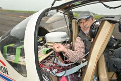 実験は11~15日に行われ、14日には報道陣にその様子が公開された。モーターグライダー(翼長18メートル)にシステムを搭載し、上空450メートル地点から、飛行中も安定的に画像データの通信が可能なのか調べた。