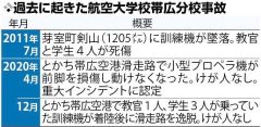 同校では2020年に、訓練機が着陸後に滑走路に逸脱する事故があった他、11年には帯広空港を離陸した訓練機が剣山(芽室町)の南斜面に墜落し、教官と学生合わせて4人が死傷する事故も起きている。