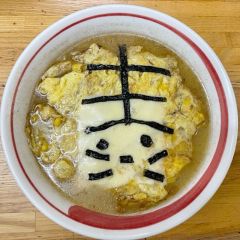 どんぶりいっぱいに広がる卵にチーズと海苔でトラを表現した。奥さんが寅(とら)年生まれのため、動物はトラに決めたという。卵は3個使い、きれいな色を出すため弱火で焼く工夫も。塩ベースのスープにバターコーンを入れた。麺は、帯広で製麺し熟成させたものを使用。歯ごたえのある麺にスープがよく絡む。子どもに人気で、同企画のチラシを見て来店した観光客もいるという。