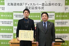 12日に道農政事務所帯広地域拠点で選定証が授与された。川上さんは「ゴールを見据えないで出発したので、栄誉ある賞に困惑しつつもうれしい。今後もこうした取り組みを続け、芽室町と十勝の発展に寄与したい」と語った。(大海雪乃)