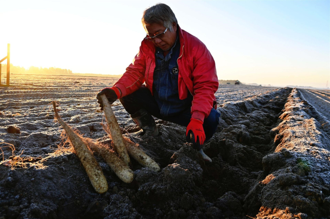音更、柴田さん方の長いも畑に異例の10月霜降 春夏冬の吉兆喜ぶ