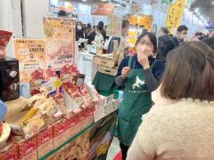 今回は初参加の6社・団体を含め、19社・団体が出展。乳製品や肉製品、熟成ジャガイモなどを紹介、試食を通してバイヤーに売り込んだ。電子レンジで手軽に作れるポップコーンは、女性や外国人の関心も高かった。