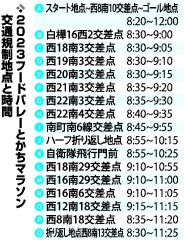 平原通のスタート地点では、午前8時20分からオープニングセレモニーが開かれ、米沢則寿帯広市長らがあいさつする。その後、ハーフに続いて同8時40分に5キロ、同8時50分に中学生以上の2・5キロ、同8時55分に小学生の2・5キロ、同9時に親子ファミリー、車いすと順次スタートする。