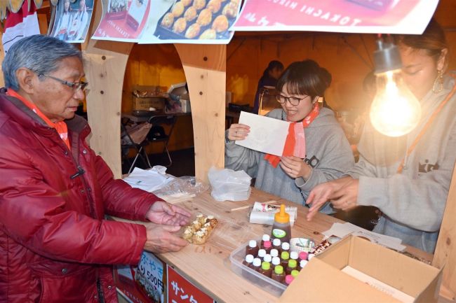「つぶやき」人気広尾高校生考案の新グルメ「サンタのつぶやき」を特別販売。予想以上の人気で、140個を売り上げた