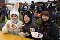ゴールの中央公園では、十勝管内のグルメを満喫できる「食フェスタ」が4年ぶりに復活。2019年と同程度の28店舗が並び、午前10時ごろから走り終わったランナーが到着し長い列ができた。