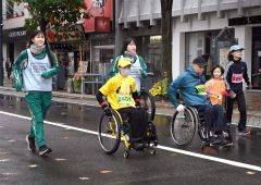 娘の小晴ちゃん(5)を膝に乗せて完走した山口さんは「安全に楽しく走れてよかった」と達成感をにじませていた。「視覚や聴覚など、より多くの障がい者の方が気軽に参加できるような運営になればいい」と話していた。