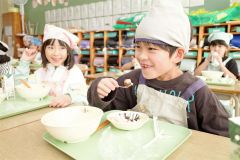 ホクレン無償提供のあんこを使い給食 足寄小 3