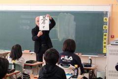 書道家・八重柏冬雷さん、芽室小5年生に書道表現を伝授