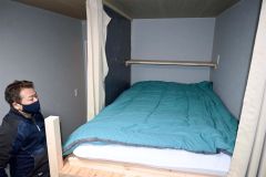 定員は12人。客室は2人部屋(3室)と3人部屋(2室)で、2段ベッドに寝泊まりする。ベッドスペースにはカーテンや棚があり、プライベート空間を確保できる。飲食の提供はなく、持ち込みでカップ麺や総菜などを食べられるよう簡単な流し場を配置、冷凍食品の自販機もある。