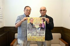 歌手デビュー30周年を迎えた平島さん(左)と、ショーで司会を務める山田幹雄さん