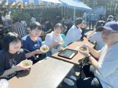 【清水】牛とろフレークで知られる十勝スロウフード(清水町、山本英明社長)の「牛とろ祭り」が16日、清水町御影の本社前で行われた。9月(ギュウ)16日(トロ)の「牛とろの日」に合わせて初開催。先着100人限定の無料牛とろ丼は、開場の午前10時前から来場者が並び、整理券配布とともに無くなる人気だった。
