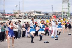 2回目の開催。ファイターズガールの高野実さん、塩澤美咲さん、原藤由衣さんとフレップが駆け付け、子どもたちにきつねダンスを指導。その後、帯広南商業高校バトントワラー部、音更バトントワラーズ、ダンススクール「スタジオハーミット」と訪れた子どもたちを加え、総勢100人以上でダンスを踊った。
