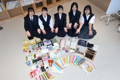 駒形さんと同じクラスで仲の良い坂口ひとはさん、須崎こころさん、神谷侑花さん、佐藤奏名さんは「杏が頑張っているから」と、使わないペンやキャラクターの人形を寄付する。4人は「支援活動は知っていても、寄付のやり方は分からなかった。私たちが使わなくても、必要としている人が大切に使ってくれたらうれしい」と話した。