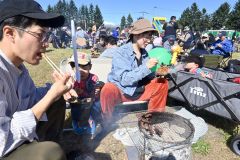 家族3人で訪れた帯広市の会社員眞柳英知さん(35)は「ニンニクも肉も最高においしいし、つかみ取りもお得だった。生産者の努力に感謝する気持ちで堪能した」と笑顔で話していた。(小野寺俊之介)