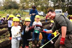 山本燕ちゃん(5)は「大きくて長いイモが取れて楽しかった」と話していた。鈴鹿さんは「園児たちの心とパワーでたくさん良いイモが収穫できた」と満足そうだった。(及川雅敦通信員)