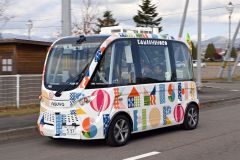 道公安委員会から今月24日に許可され、特定条件下で自動走行が可能になった。町は、運転手の負担軽減、運行コスト削減など、地方の交通問題解消に向け、2017年から実証実験を重ね、22年12月からレベル2の定期運行を始めた。使用する車両はこれまで通り、フランス・ナビヤ社製の電気自動車(EV)「アルマ」(8人乗り)。
