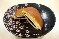 あんバターどら焼き(1個250円)は「OFFICE GREEN TALE」(帯広、真鍋充代表)が同道の駅内で運営する「CHA-YA-GREEN(茶屋グリーン)」が出品。JAおとふけの小豆を甘く炊き上げ、よつ葉のバターと一緒にしっとりと焼き上げた。