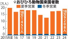 おびひろ動物園(稲葉利行園長)は24日、冬季開園を終え、今年度の営業を終了した。年間来園者数は前年度比1万5401人増の18万9208人で、7年ぶりに18万人を超えた。