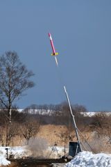 【大樹】東海大学の学生が自作したハイブリッドロケットの打ち上げ実験が8日、大樹町美成地区で行われ、同日午前11時59分、ロケットは北東方向に空高く舞い上がり、打ち上げは成功した。大樹町内での打ち上げ成功は3年連続。