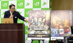 【札幌】JR北海道は14日、人気アニメ作品「鬼滅の刃」とタイアップしたプロモーションを6月18日から実施すると発表した。帯広駅など道内10駅でスタンプラリーを実施、帯広駅や新得駅で特別装飾を行う。特急「おおぞら」「とかち」では、登場キャラクターの声による車内アナウンスも予定。日本のアニメは海外でも人気が高いことから、国内外の観光客らにアピールして鉄道の利用促進を図る考えだ。