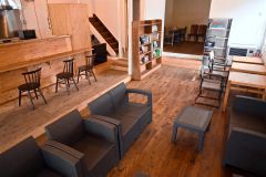 平日は町地域おこし協力隊の5人が常駐し、休憩や談話など誰もが気軽に使えるフリースペースとして開放。観光、障害者支援、スポーツ振興など、5人の担当分野に関する相談も受け付ける。チャレンジショップの出店を引き続き募集するほか、イベントの開催にも利用できる。