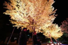 • イチョウ並木、幻想的に輝く夜 音更 24日までライトアップイベント