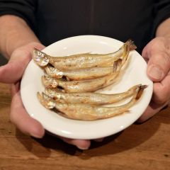韓国料理「ましっそよ」では、ワタを取り除いた干しシシャモ焼きを提供。1皿に5尾が並び、うま味の強い雄と、子持ちの雌を食べ比べることができる。店主の佐藤剛仁さん(66)は「今季は少し小ぶりだが、味は例年と変わらずしっかりしている」と話す。