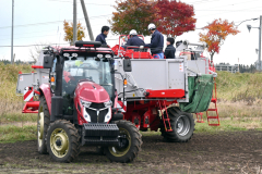ロボトラで収穫機けん引してのジャガイモ収穫 更別で初の一般公開