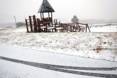 十勝地方は28日、冬型の気圧配置の影響で一時的に雪雲が流れ込み、帯広市内で初雪を観測した。10月の初雪は2年連続で、平年より4日早く、昨年より8日遅い。士幌町内の士幌高原展望台でも雪が降り、芝生がうっすら雪化粧した。